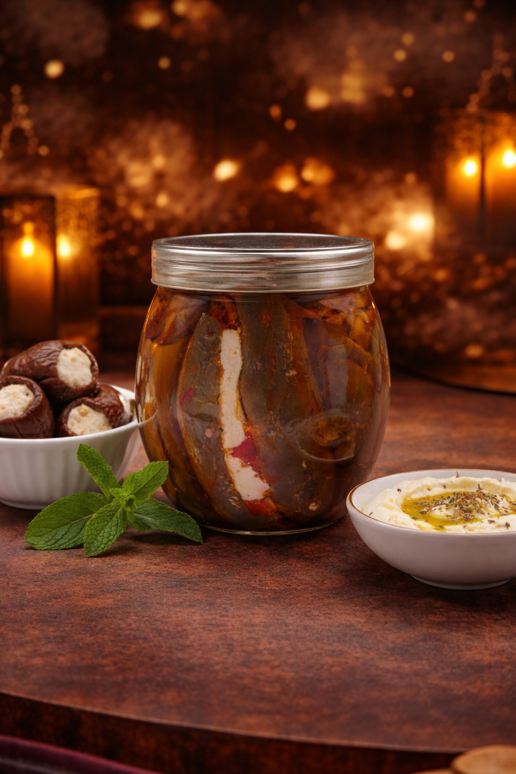 مستحيل حد يتخيل طعم المقدوس ويا المكسرات مع الشطه وكل هذا المكس العجيب محشي باللبنة ويا زيت الزيتون .